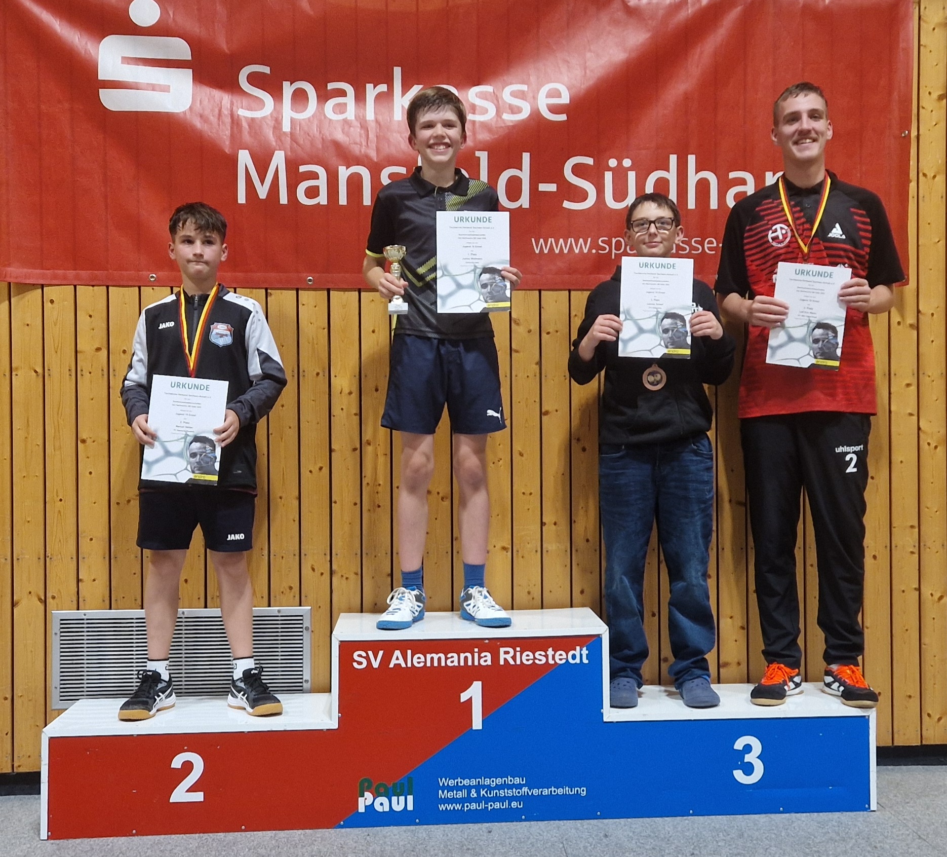Am 01.11. und 02.11.2025 fanden in Riestedt die Bezirksmeisterschaften im Nachwuchsbereich statt. Hier waren wir mit 3 Spielern in 2 Altersklassen mit je 32 Teilnehmern unterwegs und konnten auch ordentliche Erfolge erreichen.