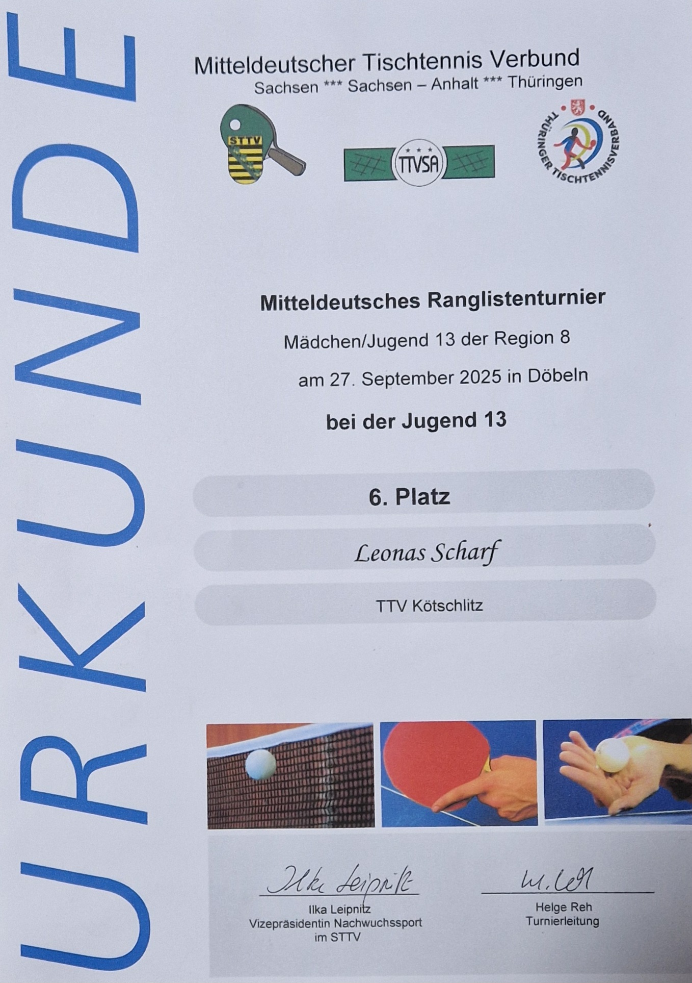Am 27.09.2025 fand in Döbeln das Mitteldeutsche Ranglistenturnier statt. Hier trafen sich die besten 10 U13 Spieler aus Sachsen, Sachen-Anhalt und Thüringen.